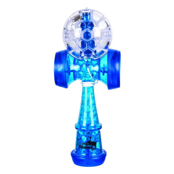The newest addition to Duncan’s kendama line, the Chameleo Light-Up Kendama brilliantly illuminates! Both the base and the kendama are fitted with bright lights for gorgeous play. Every Chameleo is molded from high impact plastic designed to withstand plenty of play. After molding, each of the Chameleo’s cups is surrounded with a soft silicone ring that offers easy, cushioned landings for the ball, perfect for the beginner. Also fit for a pro, the silicone rings can be easily removed as skill progresses.