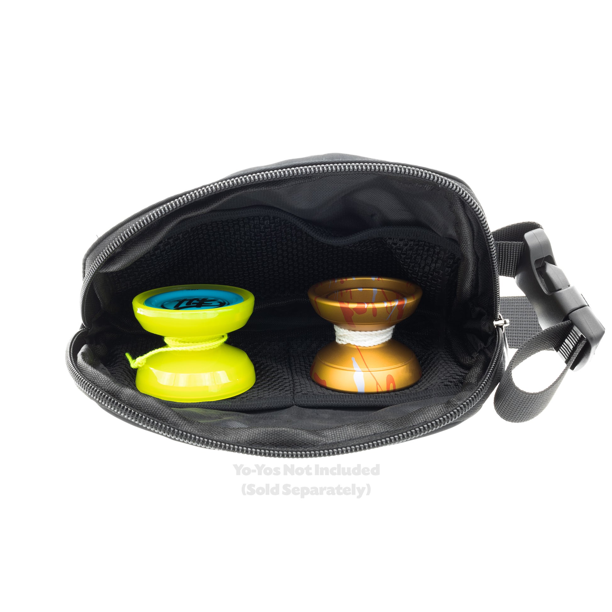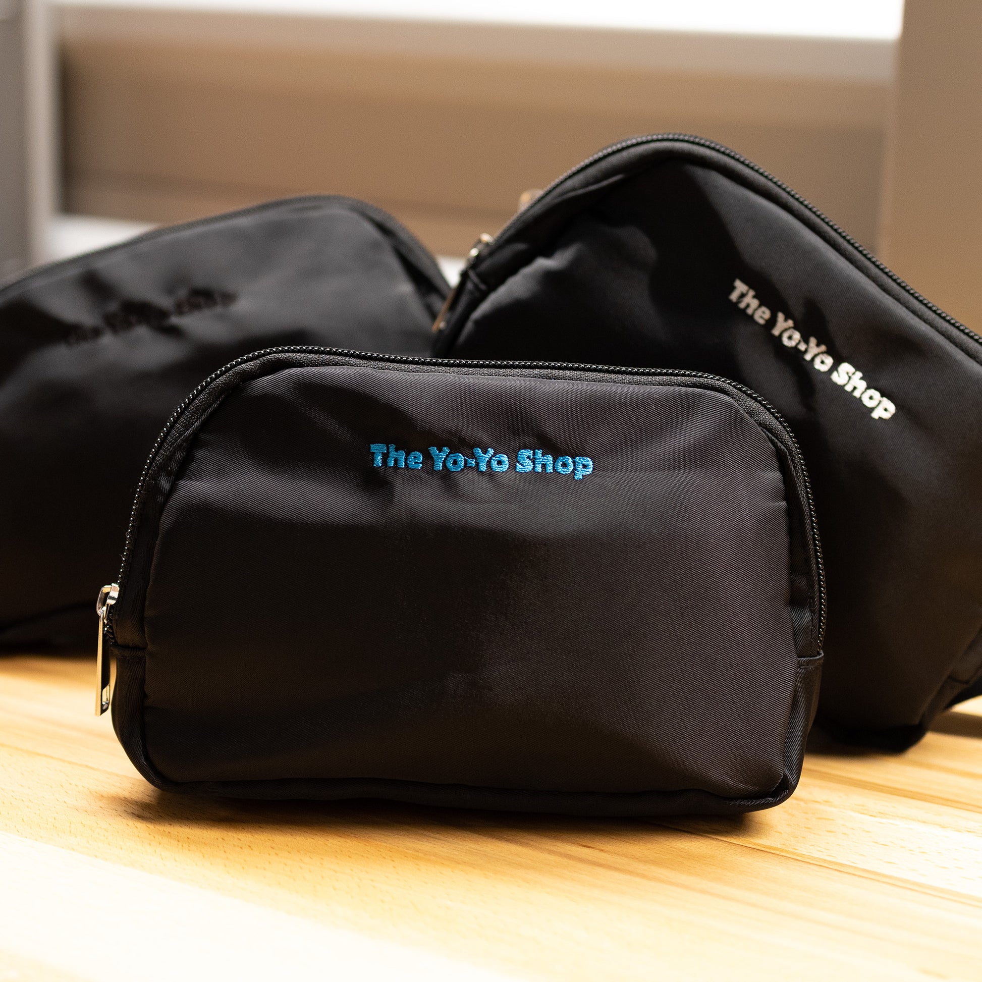 Looking to carry some extra yo-yos and accessories? The Yo-Yo Shop Belt Bag is just the perfect size to carry a few yo-yos, string, and more! Each bag has a main zippered compartment with three netted areas to keep your items in place as well as an open area in the middle. The rear of the bag also has a zipped compartment for thinner items like a phone, cables, etc. The attached adjustable strap allows you to wear the bag around your waist or as a crossbody always keeping your gear accessible and easy to access. Available in 3 embroidered text options Black, White, or Blue. Each bag is embroidered with love by Brandon's wife Kristin.